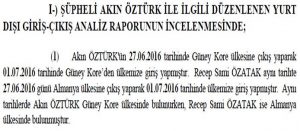 - Bu numara ile Akın Öztürk’ün 2 Temmuz 2016’da yaptığı görüşmeler büyük olasılıkla bir gün önce döndüğü ziyaretle ilgilidir.