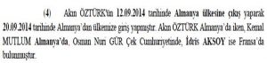 - İddianamede Akın Öztürk’ün Fransa’da olduğu belirtilmiş olup tamamen yanlıştır. Ziyaret edilen ülke Fransa değil Şili’dir.
