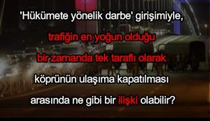 - ‘Hükümete yönelik darbe’ girişimiyle,trafiğin en yoğun olduğu saatte,köprünün tek yönlü ulaşıma kapatılması arasında ne tür ilişki vardır?