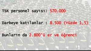 - “Darbe” ye 570.000 askerin sadece 8.500’ü (yüzde 1.5) katıldı, onların da önemli kısmı er ve öğrenciydi.