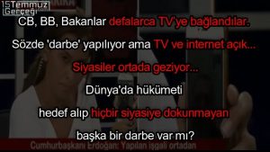 - Nasıl bir “darbe” ki, tüm iletişim kanalları açıktı ve siyasiler açıklama üstüne açıklama yaptılar.