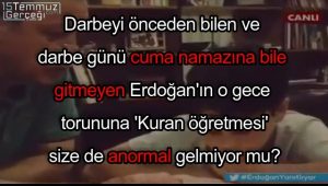 - Darbeyi önceden bildiği için, darbe günü cuma namazına bile gitmeyen Erdoğan’ın, o gece torununa Kuran öğretmesi(!) anormal değil mi?