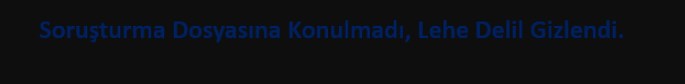 - Ancak, iddianamede bir kısım ifade, gerçekten farklı olarak, beni suçlayıcı şekilde yer alırken, lehime olan birçok tanık ifadeleri yer almamıştır. Soruşturma Savcısı Metin ASLAN DELİLLERİ TAHRİF ETMİŞ VE GİZLEMİŞTİR.