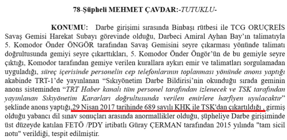 #15Temmuz sonrası TSK’da yapılan İHRAÇLARIN, darbeye teşebbüs iddiasıyla yapılan TUTUKLAMALARIN MESNETSİZ OLDUĞUNUN CANLI BİR ÖRNEĞİ olarak tarafıma yöneltilen suçlamaları paylaşacağım.15 Temmuz Gecesi Bir Deniz Kurmay Binbaşı’nın Yaşadıkları!