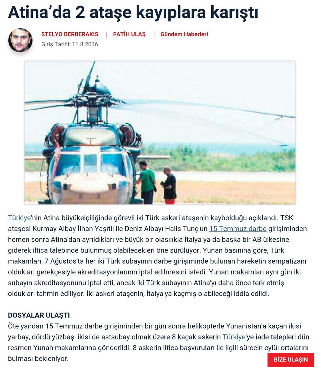@TC_Atina‘ya bilgi vereceklerdi. Oldukça samimi olduğumuz Birinci müsteşar@BarisKalkavan beni arayarak “Albayım neredesiniz? SK Ataşesi size ulaşamadığını söyledi!” diyecekti. @BarisKalkavan‘a benden ümidi kesmesi için#pazar günü her yer kapalı olduğu için “Praktiker mağazasındayım” cevabını verecektim. Bu cevabım sonrasında kendisi@TC_Disisleri‘ne durumu rapor etmesiyle diplomatik statümün iptali Yunan makamlarından talep edilecekti.- Ayrıldığımızın resmi faalite katılmamamla hiç alakası da yok, çünkü 29 Temmuz’da gerçekleşen resmi faaliyetten sonra, ilişiğimin kesildiği 05 Ağustos tarihine kadar bir hafta süreyle daha Ataşelikte çalışmaya devam ettim.