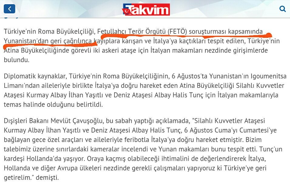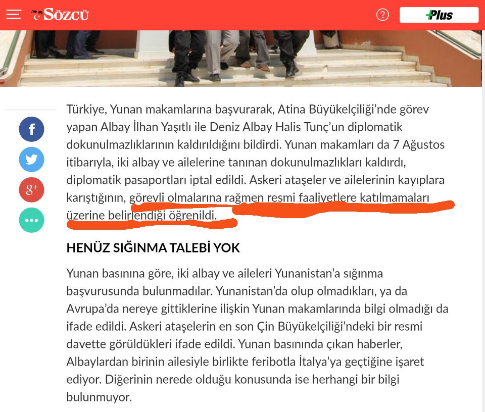 @Sabah@Hurriyet ve diğer gazeteler ne dedi “Albay Yaşıtlı ve Albay Tunç’un 29 Temmuz’da#atina yakınlarındaki Salamina Deniz Üssü’nde#NATO‘nun bir devir teslim törenine de davetli olmalarına rağmen katılmadıkları belirlendi.” En trajikomik olanı da bu haber.- Evet ben,