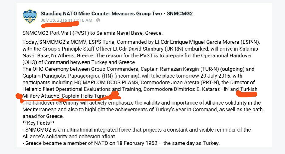 #Türk komutanın Yunanlı subaya teslim edeceği#NATO Mayın Görev Grubu devir-teslim törenine davetliydim ve 29 Temmuz 2016 tarihinda katılmam bekleniyordu.Fakat Albay Yaşıtlı değildi. Bu davetiyenin gülünesi hikayesini anlatayım.