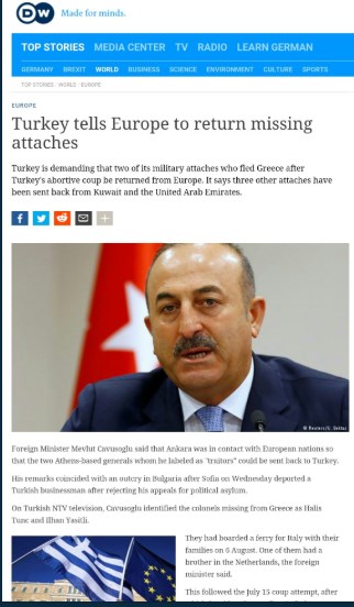 - Çavuşoğlu 11 Ağustos’ta “Şimdi dün (10 Ağustos 2016) itibariyle dön dediğimiz kişiler için süre doldu, gelmeyenler için yasal işlemleri yapacağız.”dedi. Peki öyle miydi? Hayır çağrılan Ataşler için
