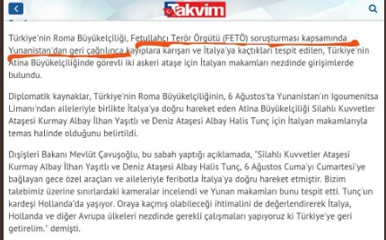@Sabah@Hurriyet ve diğer gazeteler ne dedi “Albay Yaşıtlı ve Albay Tunç’un 29 Temmuz’da#atina yakınlarındaki Salamina Deniz Üssü’nde#NATO‘nun bir devir teslim törenine de davetli olmalarına rağmen katılmadıkları belirlendi.” En trajikomik olanı da bu haber.- Evet ben,