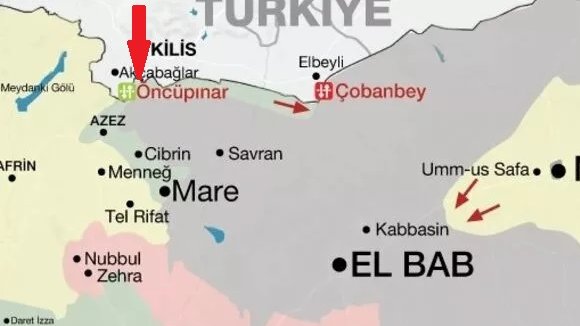 • Bu kapılardan Akıncı kapı adı verilen kapı Öncüpınar’ın yaklaşık 5 km doğusunda. (Aşağıda işaretli). İdlib tarafında Admah adı verilen bir kapı, Afrinde ve farklı yerlerde buna benzer kontrolsüz geçiş kapıları bulunuyor. Peki, bu kapılardan geçenler hangi olaylarda kullanıldı?