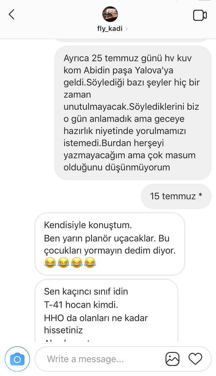 - Tutuklu askeri Öğrenciler için açtığımız hesabı takip ettiğimi gören arkadaş kendisine dm atıyor ve kendisi cevap veriyor. Ona buna hain dedikten sonra arkadaş soru soruyor.