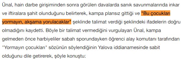 - Bu konuyu açmadan önce şunu belirteyim. Abidin Ünal Öğle yemediğinden önce Yalova Hava Meydan Komutanlığı yedek Pisti 18-36 Pisti üzerinde Harbiyelilere yaptığı konuşmada şunları söylemiştir.