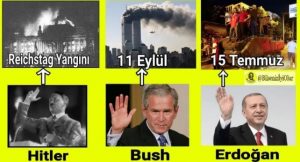 • 11 eylül gibi 15 Temmuz da CANLI-KANLI idi. Pentagon’a saldırının yerine meclise yapılan fake saldırı vardı, Tüm Halk KİNlendirilmişti.
