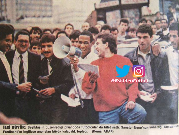 - 1988 – Beşiktaşlı futbolculardan Kadir Akbulut, Les Ferdinand, Şifo Mehmet, Rıza Çalımbay ve Recep Çetin, Taksim’de kulübün düzenlediği eşya piyangosunun biletlerini satıyorlar.