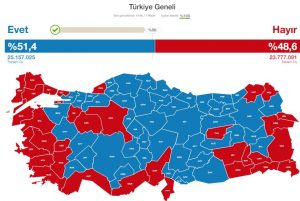 • 16 Nisan Referandumun da AKP-MHP ittifakına rağmen oy tablosu tamamen değişmiş, muhalefet İstanbul – Ankara gibi büyükşehirler de ve Akp’nin son seçimlerde birinciliği göğüslediği illerde Hayır oyunu birinci çıkarmıştır. %49-51 gibi yakın bir oran çıkmıştır.