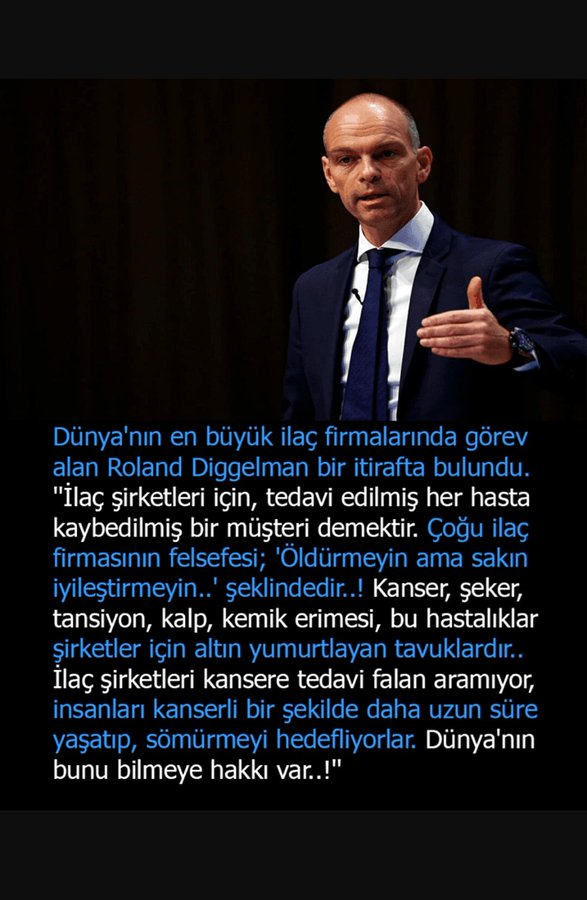 - Bir süre önce Roland Diggelman ın yapmış olduğu itirafı hepiniz hatırlıyor olmalısınız, ilaç firmalarının neredeyse hepsinin gözünde ne yazık ki bizler sağlığına asla kavuşmaması gereken birer müşteriden başka birşey değiliz ve bazılarına göre dünya nüfüsunun hızlı bir şekilde 500 milyonun altına indirilmesi gerekmekte,