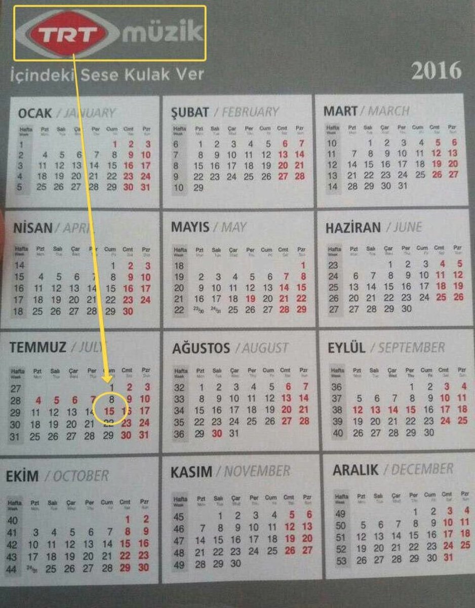 #15Temmuz TATİL olarak KIRMIZI renkli olarak yazılmıştı. Takvim kehanette mi bulunmuştu acaba !?