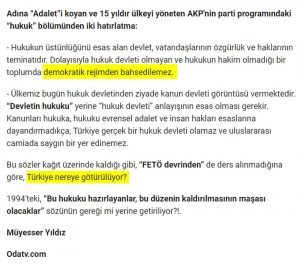 Bunun İkinci anlamı da şudur;’EY AKP İLERDE BU HUKUKSUZLUKLARIN CEZASINI SEN TEK BAŞINA ÇEKECEKSİN! BİZ ODATV’CİLER BİLE SENİ UYARMIŞTIK”