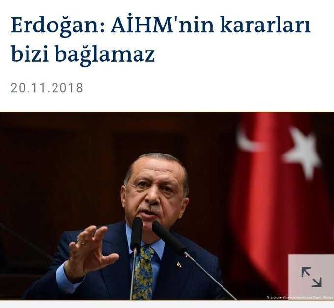 - Yürütmenin başı CB Erdoğan’ın “AİHM kararı bizi bağlamaz, karşı hamlemizi yapar işi bitiririz” sözü ve buna bağlı olarak gelen yargı kararları (yani “karşı hamleler”) bu uygulamanın en açık kanıtlarından birisidir.