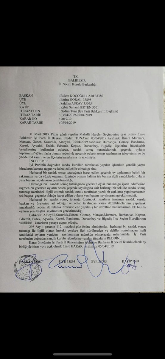 - Bunu AKP li MHp li sandım görevlileri dahi söyledi. Ancak İlçe seçim kurulu Hakim’in düzeltilmesi ve CHP li üyenin isyanına rağmen düzeltme yapılmasına izin vermedi. Yine Maltepe’de oy pusulası üzerinde yazı olmasına rağmen bu ilçe seçim kurulu geçersiz oyu kabul ettirdi.