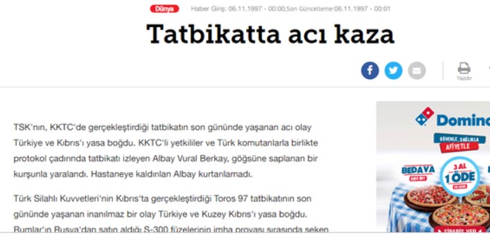 - Toros-2/97 tatbikatı devam ediyordu. Protokol çadırında başlayan koşturma Piyade Albay Vural Berkay hayatını kaybettiğine dair haberin gelmesi yerini derin bir sessizliğe bırakmıştı.