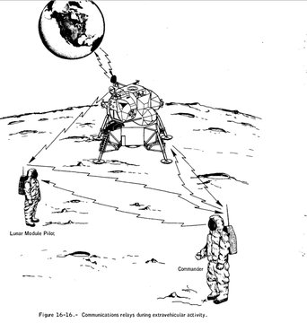 - Dünya dışında birincil modülde haberleşme sistemi. Ayrıca bir astronotta haberleşme sistemini nasıl gerçekleştirdiği de gösterilmiştir.