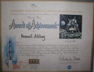 - NASA’nın uzay ve aya gitme çalışmalarının hemen hemen her adımındaki başarısı nedeniyle kendisine verilen özel başarı belgeleri, soğuk savaş döneminden bu yana dünyanın en büyük projesini yürüten bu kuruluşun yalnızca hayranlık takdir ve teşekkür duygularını simgelemekle kalmadı.