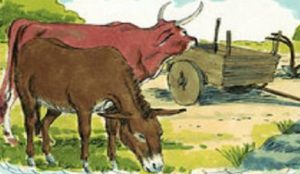 - — He ya! Bu Sene Ürünüm Kıt Oldu. Vergi Borcumu Ödeyemedim. Dört Gün Önce Vergi Memurları Öküzün Eşini “Vergi Borcunu Karşılar” Diyerek Alıp götürdüler. Sattılar. Benim Öküzün Eşi Sizin Gibi Beylerin Sofrasına Et, Sucuk Oldu Bey.