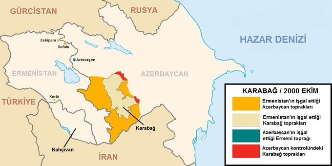 - Haritaya biraz yakından bakarsak sadece Dağlık Karabağ değil, 4 ayrı bölgede de özel durumlar olduğunu görürüz. Azerbaycan sınırları içinde Artsvaşen kasabası Ermenistan’a bağlıyken, Ermenistan sınırları içerisindeki Eskipara, Sofulu ve Kerki köyleri de Azerbaycan’a bağlıdır.