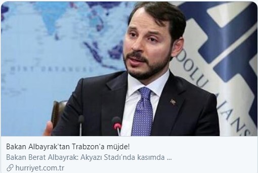 - Trabzon’da bir kahramana dönüşmek, Trabzonluların da kendisini daha fazla benimsemesini sağlamak için elindeki imkanları kullanmaktan çekinmeyen Berat Albayrak 2016 yılında Trabzonsporlulara “Akyazı Müjdesi” vererek manşetlerde yerini aldı.