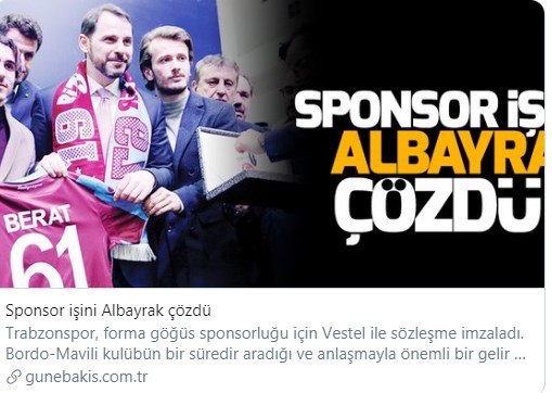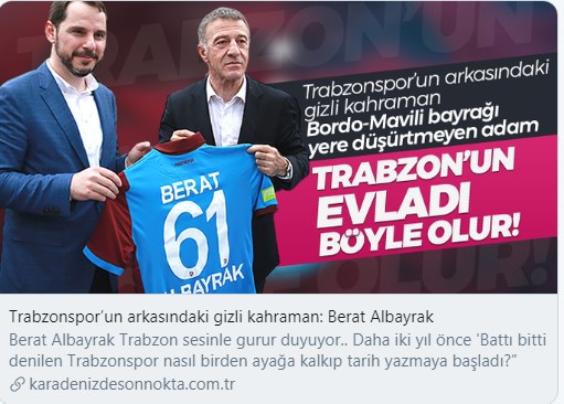 - Karadeniz’de Son Nokta ise çok daha farklı “yardımlara” değiniyor. Yazının başlığı “Trabzon’un arkasındaki gizli kahraman Berat Albayrak” Yazıya göre “Battı, bitti denilen Trabzonspor’u ayağa kaldıran sihirli değnek” Berat Albayrak’tan başkası değil.