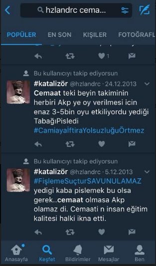 - Muhalefet,Atatürk,laiklik diye yaygara koparan,HALK TV’yi protesto etme çağrıları yapan bu hesap meğerse 2013 yıllarında o zaman ki adıyla Cemaat olan FETÖ’ye övgüler düzüyormuş…Cemaatin etki alanından,insani yetiştirme kalitesine kadar övgüler,övgüler…