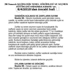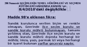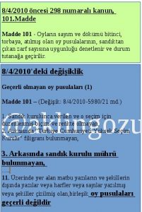 - 8/4/2010’da Madde 101’de yapılan değişiklikle oy pusulasında da mühür şartı getirilmiştir. Yine 2010 öncesi bu şart yoktur.