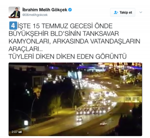 - 15 temmuz gecesi AKP’li bazı belediyeler yüzlerce belediye aracını sokaklara çıkarır. İşçiler o gün “özel olarak” mesaiye bırakılmıştır.