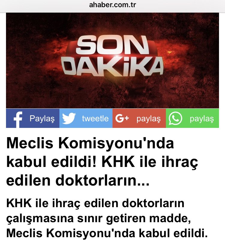 • Haklarında herhangi bir adli işlem bulunmayan veya beraat ettiği halde hala görevine iade edilmeyen çok sayıda hekimin yanında ihraç süreçlerinde “kurum inisiyatifi” kullanılıp ihraç edilmekle haklarında adli işlem tesis edilen insanların varlığı düşünülünce bu bir cinnettir.