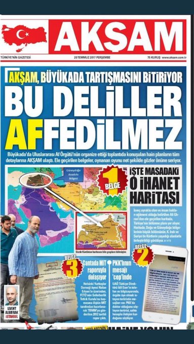 - Yapılan yayınlar sonuç verdi. Adalar Cumhuriyet Başsavcılığının talimatıyla 5 Temmuz’da Adalar İlçe Emniyet Müdürlüğü ekiplerince Büyükada’da gözaltına alınan İdil Eser ile Özlem Dalkıran, Veli Acu, Günal Kurşun, Ali Garavi, Peter Steudtner tutuklandı.