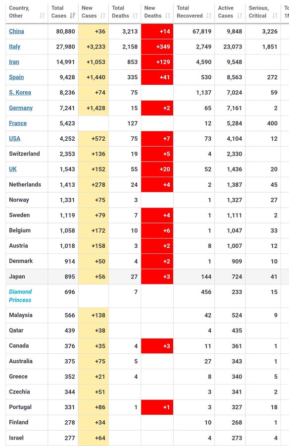 Kimse merak etmiyor mu? 1,5 milyarlık Çin vaka sayısını nasıl 80.000’de sabitledi? 1,3 milyarlık Hindistan’da neden sadece 129 vaka rapor edildi? Almanya’da 7,241 vaka, ölüm neden sadece 15? İskandinav ülkelerinde ölüm oranları neden bu kadar düşük? (SW:7, NW: 3, DNM: 4, FN: 0)