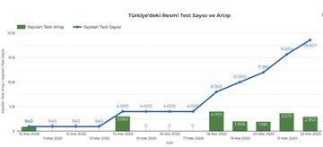 - 22 Mart gününe kadar gerçekleşen toplam test sayısı ve artışı;