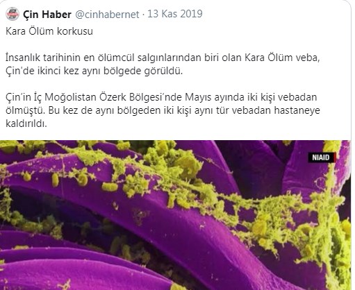 • 21 Kasım’a gelindiğinde Çin’de 3 Veba vakası daha ortaya çıkmıştı. İç Moğolistan’da 28 kişi karantina altındaydı. Haberin yazarı “Yıl 2019, hala veba var..şaka gibi” dese de, yazının sonunda Pandemi ihtimalini sorguluyordu. https://t.co/7tPYyfcJUv
