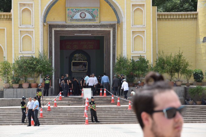 - Cuma namazını kılmak için tarihi lydgâh Camii’ne gidiyoruz. Tarihi 15. yy.a dayanan 20.000 kişilik bir cami. Öğrendiğimiz kadarıyla Doğu Türkistan’da 60 yaşın altına sakal bırakmak, doppa (Uygur takkesi) takmak, camiye girmek yasak.