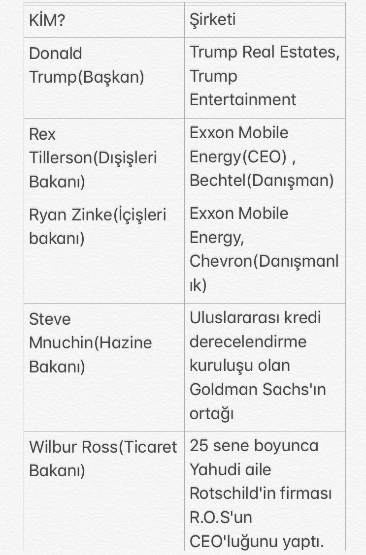 - Size Şirketokrasi’nin Trump’ı nasıl seçtirdiğini anlattım. Trump’ın şirketokrasi yararına işlerini anlatmadan önce, Donald Trump’ın kabinesiyle ilgili şu tabloya göz atalım.