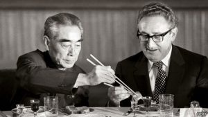 - Aynı Kissinger soğuk savaş döneminde Sovyet-Çin ittifakının parçalanabileceğini öngörerek Çin ile gizli diplomasi kurma yoluna gitti.