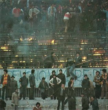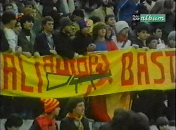 - İtalyan stadyumlarında tüm güç dengelerini değiştiren gelişme bu maçın ertesinde yaşanır. Sol’un Başkent’te kurtarılmış bölge ilan ettiği bir semt, Roma taraftarı olan devrimci gençleriyle birlikte fiili olarak Roma tribünlerinin savunmasını üstlendiğini duyurur bu tarihte.
