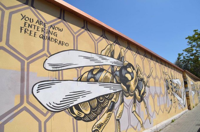 - Benzerine Kuzey İrlanda’nın isyancı kenti Derry’de rastlanan(“You are now entering Free Derry/Şuanda Özgür Derry’e giriş yapıyorsunuz”) duvar yazılarının bulunduğu bu semt, Mussolini’ye karşı çok uzun süre direnen partizanların kalesi Quadraro’dur.