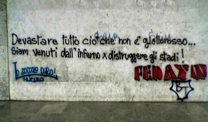 - Manifestoda yer alan ve hala Quadraro sokaklarının duvarlarında yazılı “Sarı-Kırmızı olmayan herşeyi mahvedeceğiz” sözünün de sadece Roma armasındaki renklere dair olmadığı açıktır.
