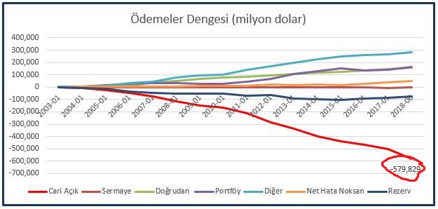 - Türkiye’nin gün geçtikçe dış borç batağına sürüklenmesinin bir nedeni var; cari açık. Cari açık en basit ifadeyle yurt dışından satın aldığınız mal ve hizmetlerin yurt dışına sattıklarınızdan fazla olması demek. 2002’den beri verilen toplam cari açık 580 milyar dolar.