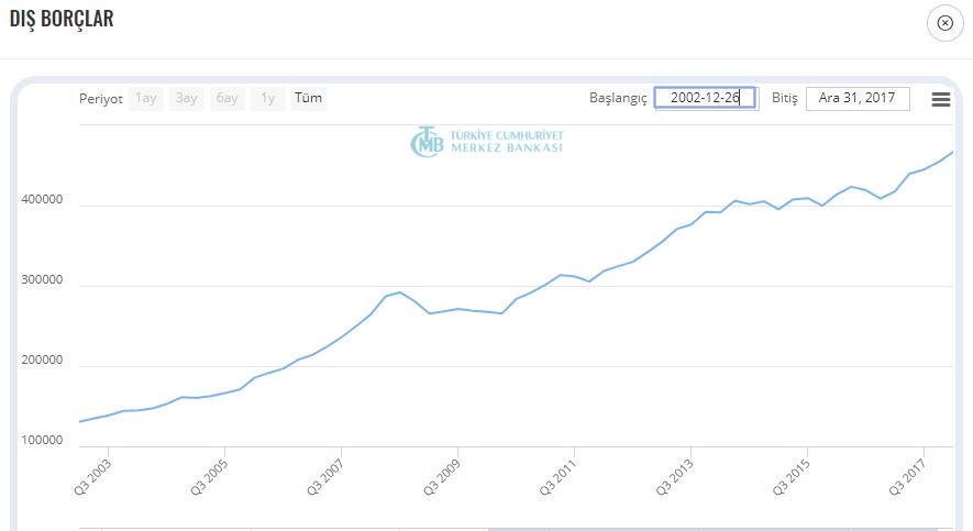 - Bu borç ne zaman yaratılmış? Aralık 2002’den (131 milyar dolar) ve Mart 2018’e (467 milyar dolar) kadar olan süre içerisinde AKP iktidarı tüm ülkeyi 336 milyar dolar borçlandırmış. Net borç da 2002’den bu yana 89 milyar dolardan 303 milyar dolara çıkmış.