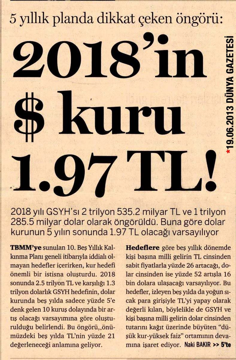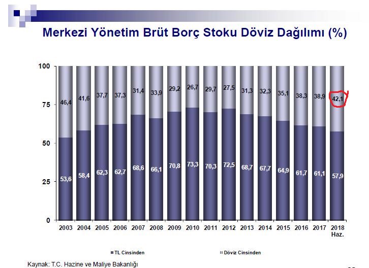 - Diyebilirsiniz ki “henüz krizden sonraki 2002 yılındaki kadar kötüyüz, daha kötüsü olmaz, endişeye mahal yok”. Öyleyse dolar kuru yukarı fırladıkça dolar cinsi borcumuzun yukarı sıçradığını ancak dolar cinsi GSYH’mizin her geçen gün çakılacağını belirtmeliyim.