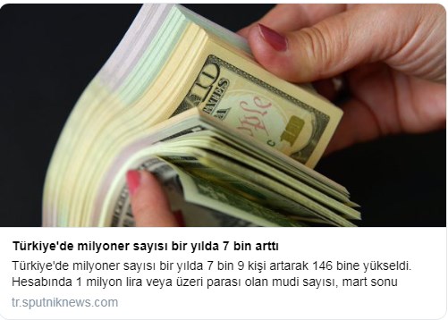 - Tam bu esnada BDDK tarafından yayınlanan veriler doğrultusunda yapılmış bu habere rastlıyoruz: TL, döviz veya altın cinsi mevduat sahibi milyoner sayısı yaklaşık 146 bin ve sahip oldukları finansal varlıkların toplamı 954 milyon TL.