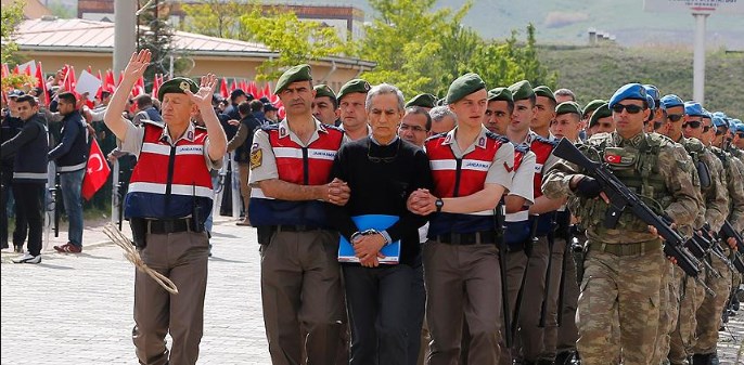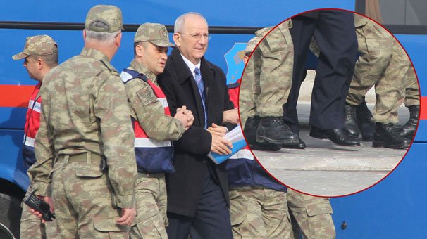 - Bir işaretiyle vatani hizmetini yapan 2 Mehmetçiğin, vazifesi olmadığı halde, eğilip ayakkabısını sildiği emekli generalle, ayakkabı bağcıkları sökülmüş, kelepçeli olarak jandarmalar arasında duruşmaya getirilen generalin aynı koşullarda yargılandığını kim iddia edebilir.